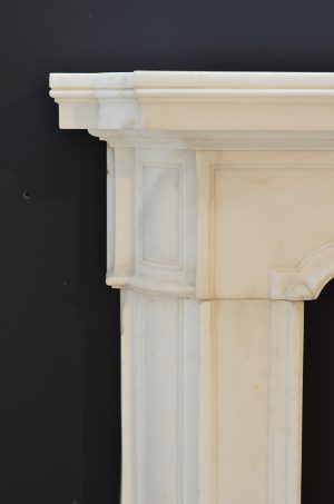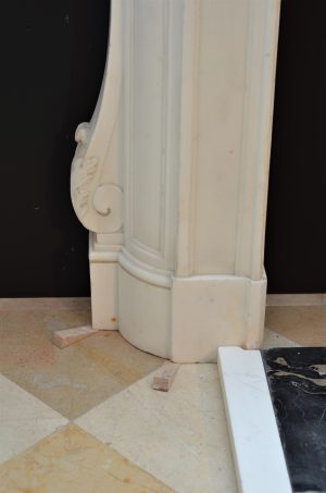 Onder op de zijstijlen zijn mooie geaccentueerde console’s met bladeren boven rechte neuten met mooie ronde profielen gesitueerd.