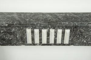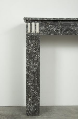 Mooie Franse Louis XVI schouw in zwart grijs geaderd Sint Anne Marmer. Meer over Sint Anne Marmer