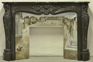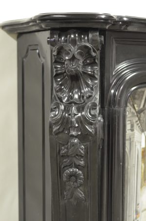 Unieke Franse Louis XV schouw uit de 19de eeuw in diep zwart marmer.