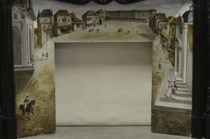 Het geschulpte en geprofileerde dekblad is mooi diep en rust op een front met een prachtige fijne gehakte schelp die uitloopt in hangende bladeren en bloemen in de consoles aan beide kanten komen deze hangende bloemen weel terug. Ze reiken zo ver dat ze bijna de weelderige bladeren raken die bovenop de neuten gemaakt zijn. De zijkanten zijn voorzien van mooie diepe panelen, het interieur van de schouw is voorzien van een porseleinen passe-partout met een romantische beschildering van een Italiaans stadsplein.