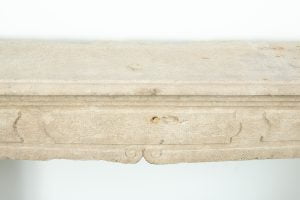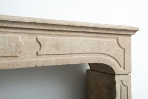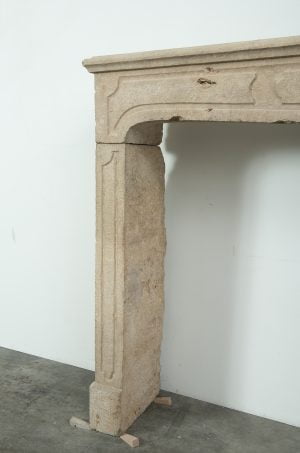 Mooie antieke en elegante Franse kalkstenen louis XIV schouw met een gebouchardeerde afwerking.