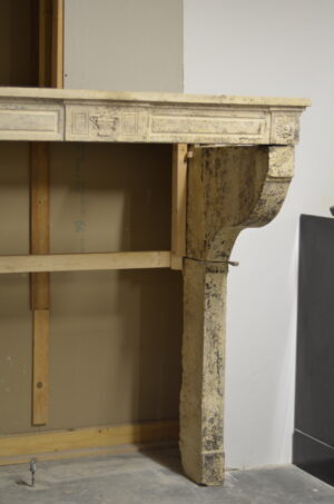 Hoge Antieke Kalkstenen Schouw, Louis XVI Stijl.