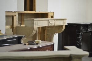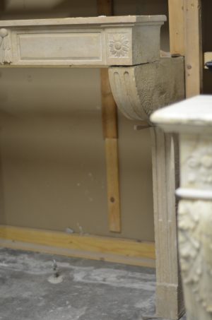 Het warme uiterlijk en de sobere decoraties van deze maakt dit een fijne Hoge Antieke Kalkstenen Schouw om naar te kijken.