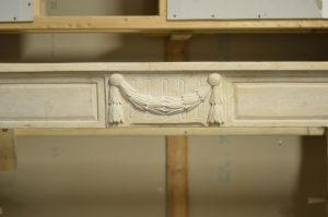 Groot massief front met mooie sierlijke bloem rozetten aan beide kanten met een mooie hangende guirlande in het midden paneel.