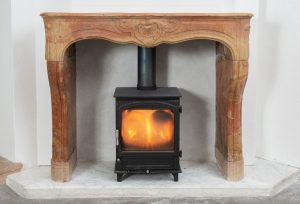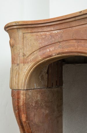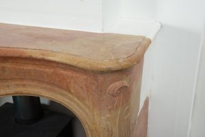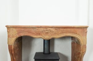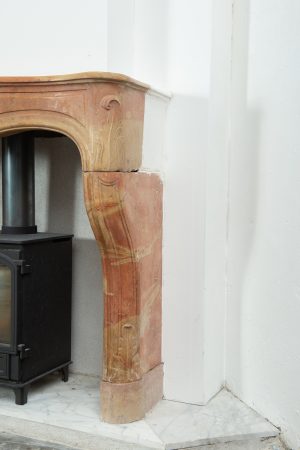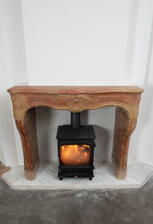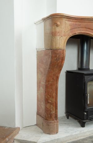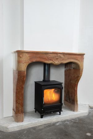 Deze kleine Louis XV schouw kan geleverd worden met matching retours en evt. bijpassende nieuwe kachel.