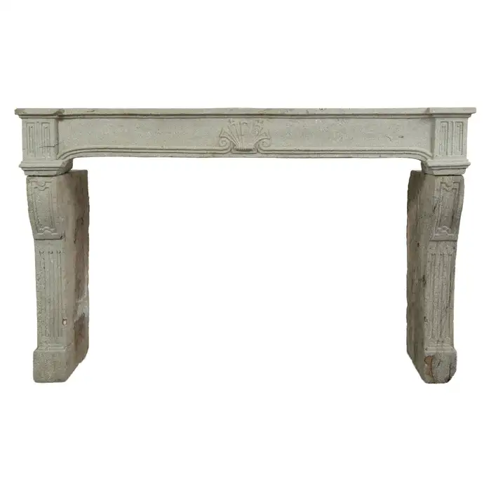 Deze lavastenen Louis XIV schouw voegt een rustiek accent toe in een vertrek met historische inrichting.