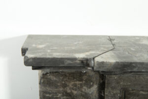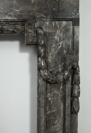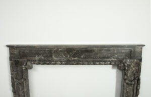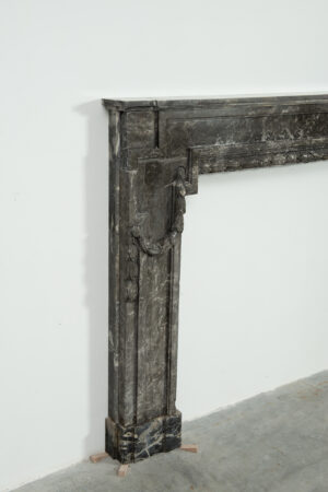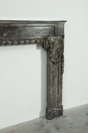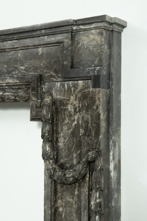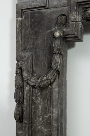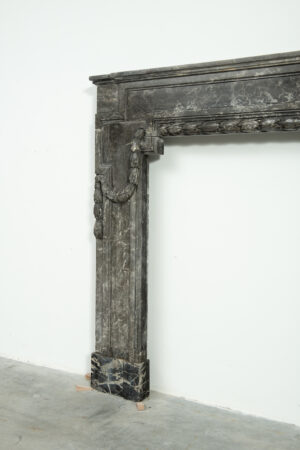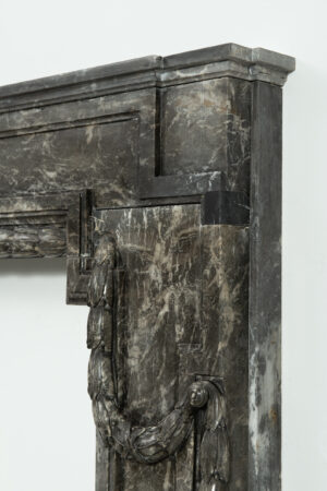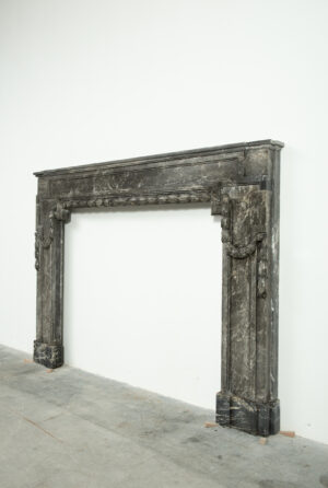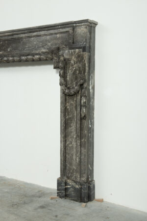 Monumentale 18e-eeuwse antieke schouw in Gris d’Ardenne-marmer.