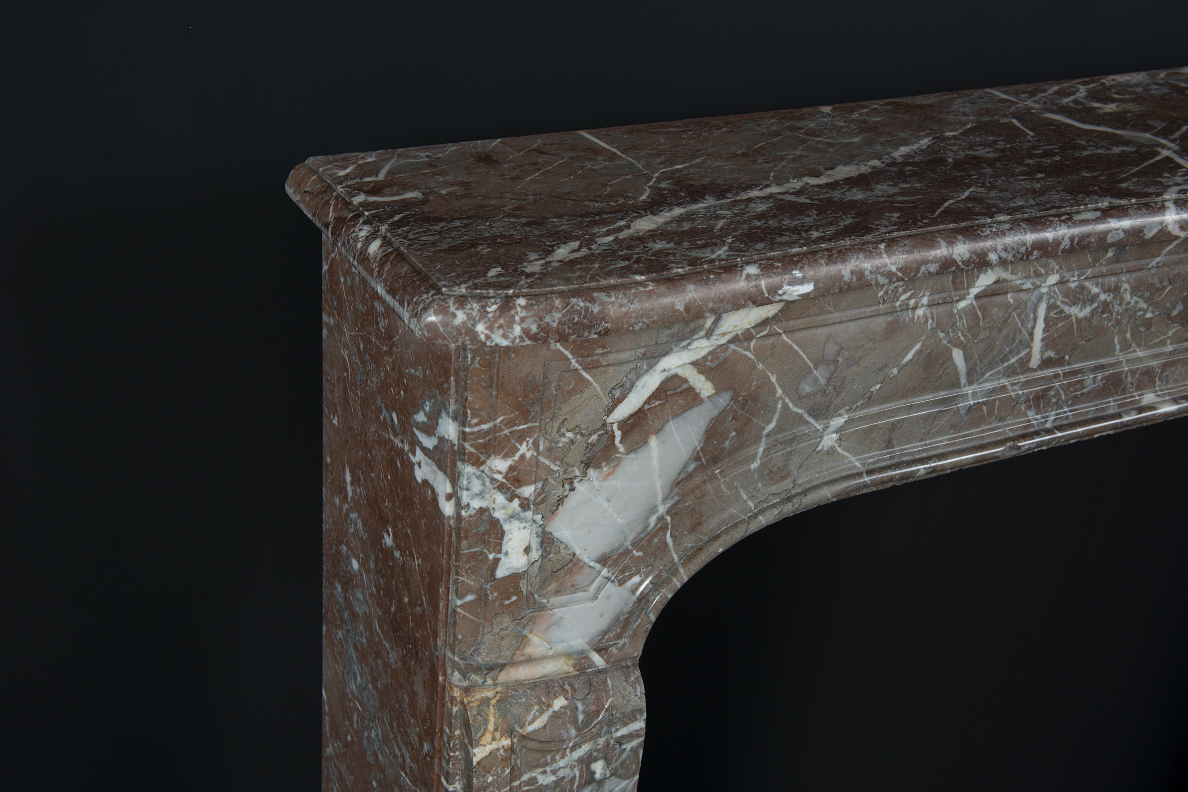 De glans van het marmer en de natuurlijke tekening, gecombineerd met de sobere vormgeving, geven de schouw een luxe uitstraling zonder overdadig te zijn. Het resultaat is een harmonieus pronkstuk dat zowel in klassieke als moderne interieurs stijlvol tot zijn recht komt.