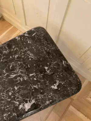 The 1.6 inch thickened Saint Anne marble top had delicate rounded corners and edges giving it a nice soft feel.