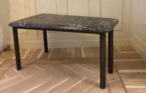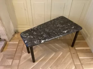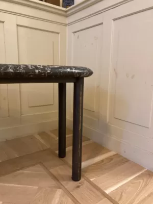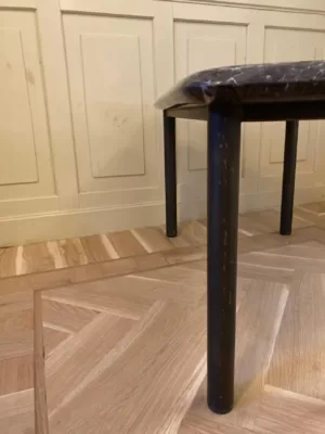 The steel frame with rounded legs are showing signs of wear, it looks like a gold finish is slowly revealing itself behind the matt black finish.
