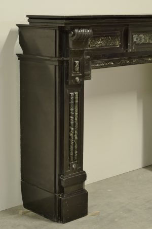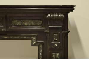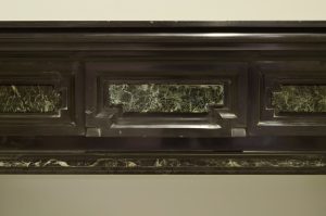 De prachtige groen marmeren decoraties samen met de afmetingen van de schouw maken dit tot een statig geheel dat zeer geschikt is voor een mooie grote openhaard.